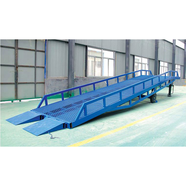 移動式裝卸登車橋用于現場無裝卸貨平臺或需要流動裝卸貨物的場所。如果物流現場沒有裝卸貨平臺,作為補救措施,移動式登車橋是非常適用的方案之一,移動式登車橋相當于一個移動的鋼結斜坡